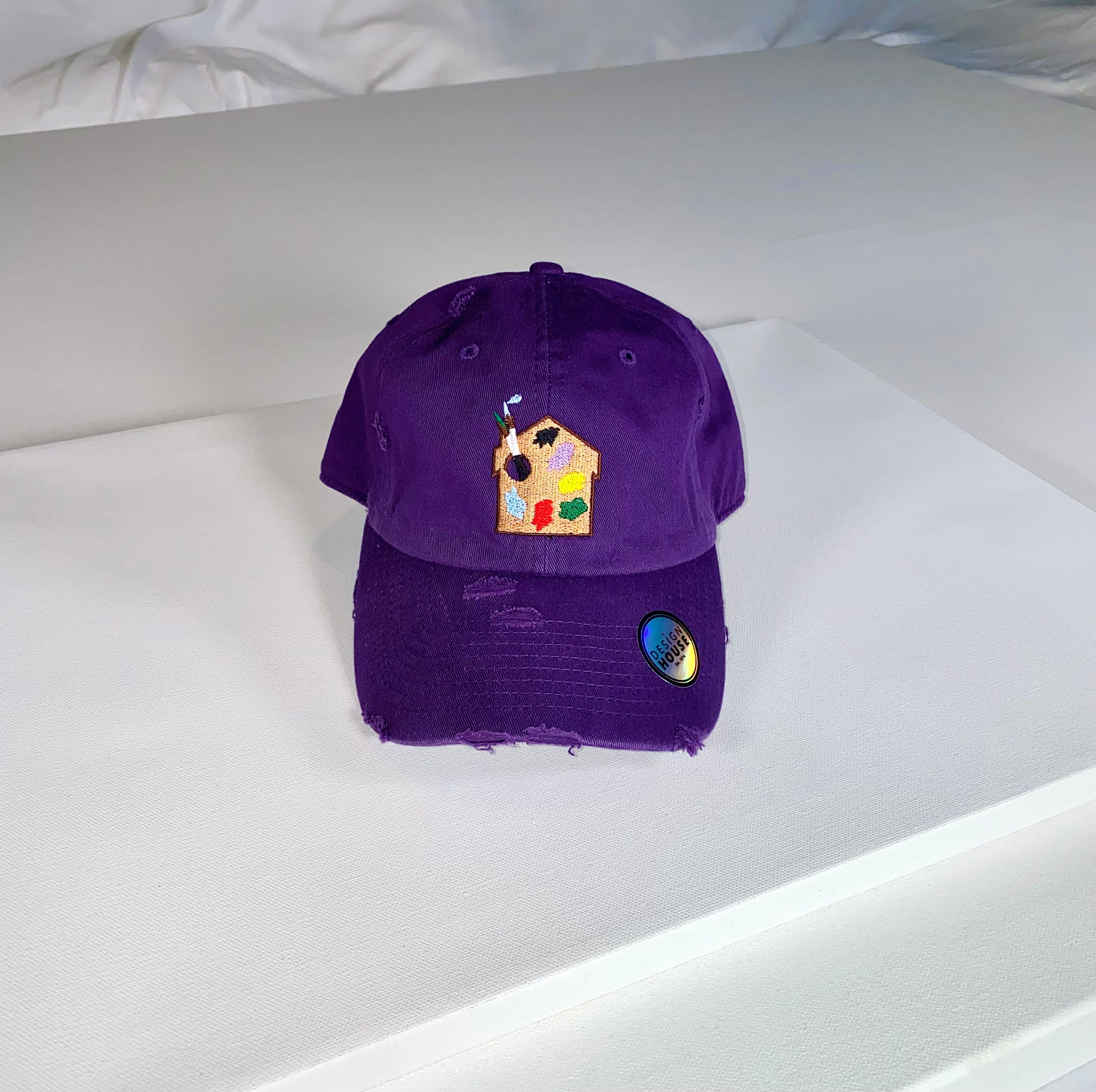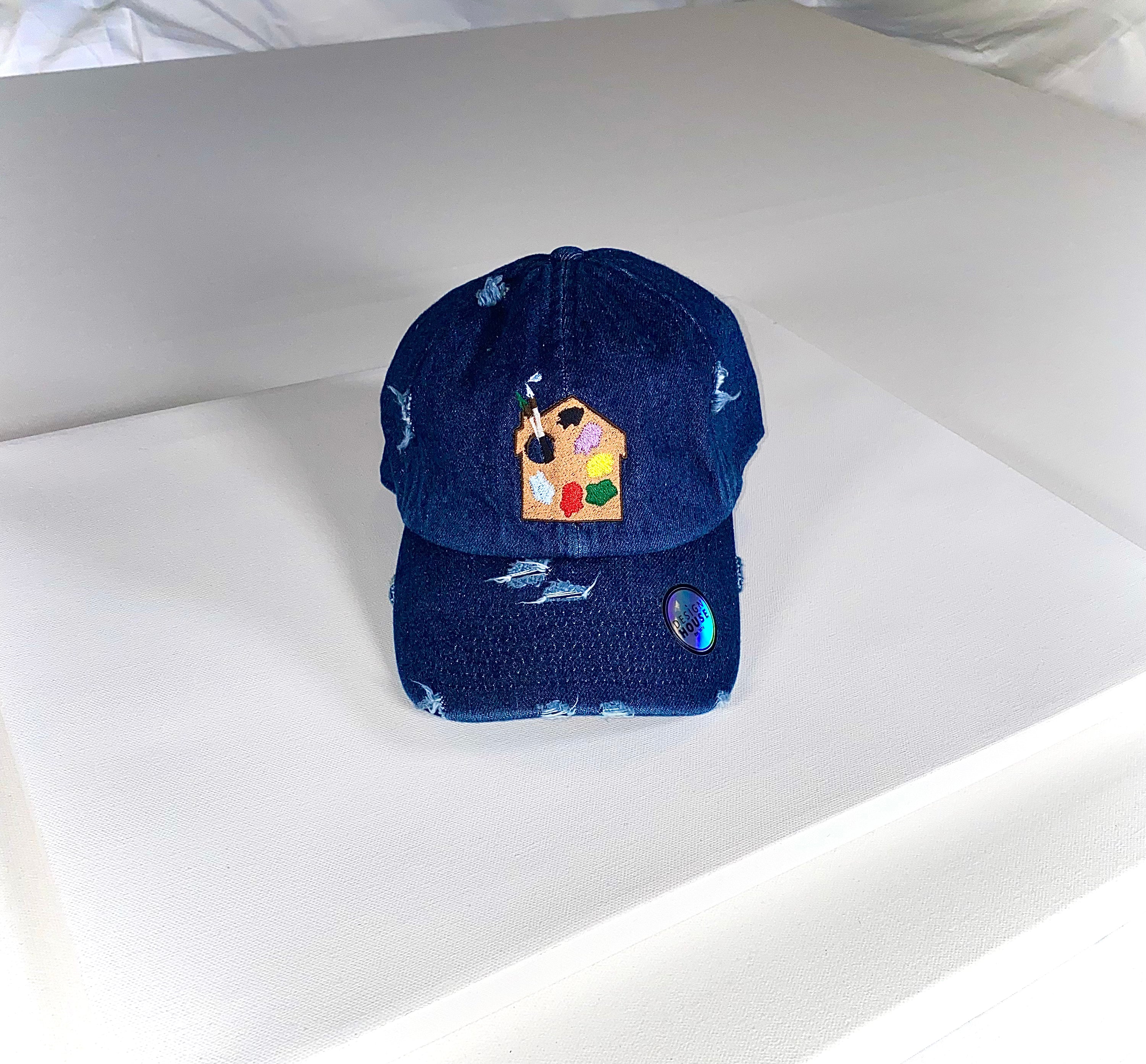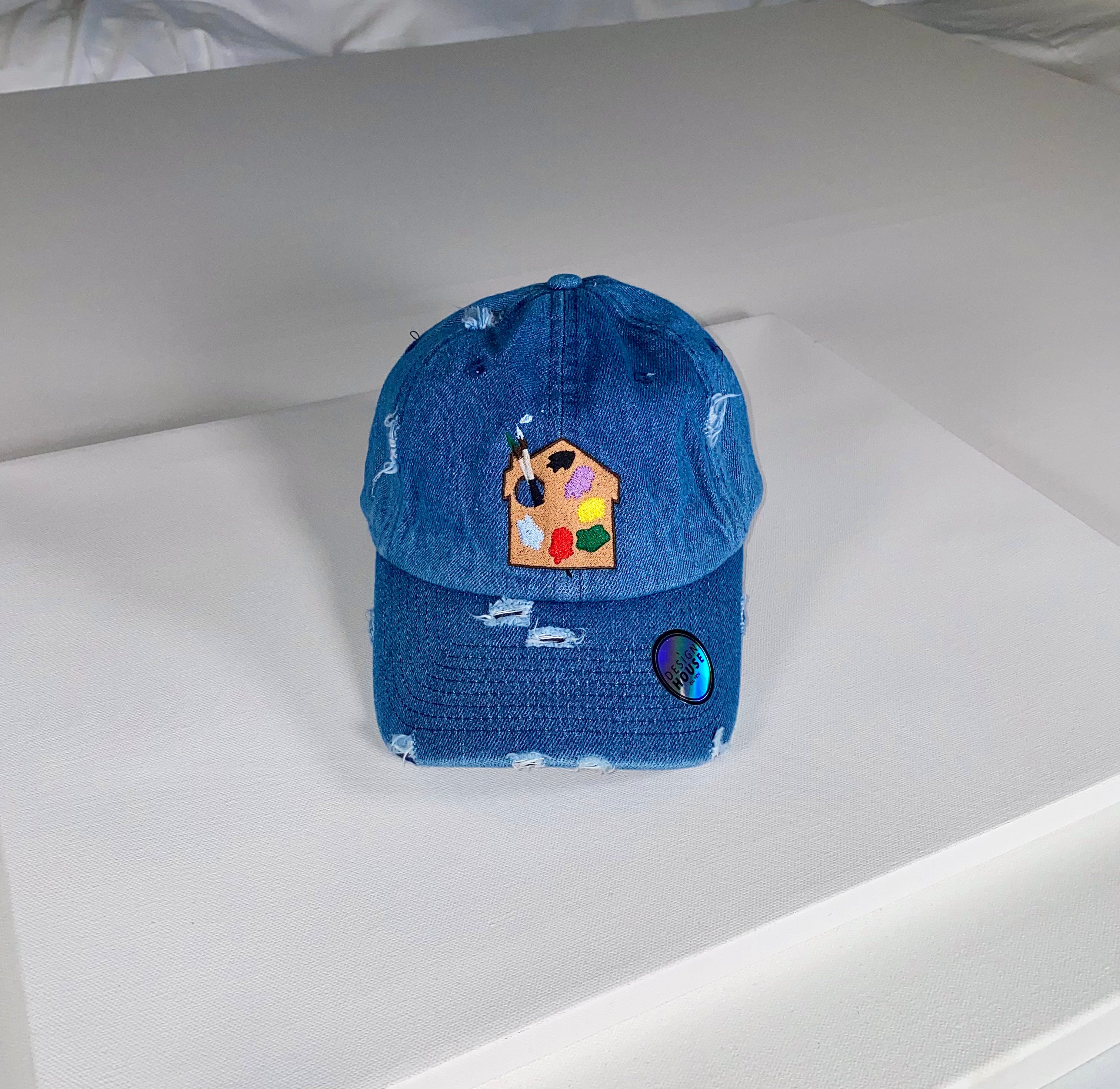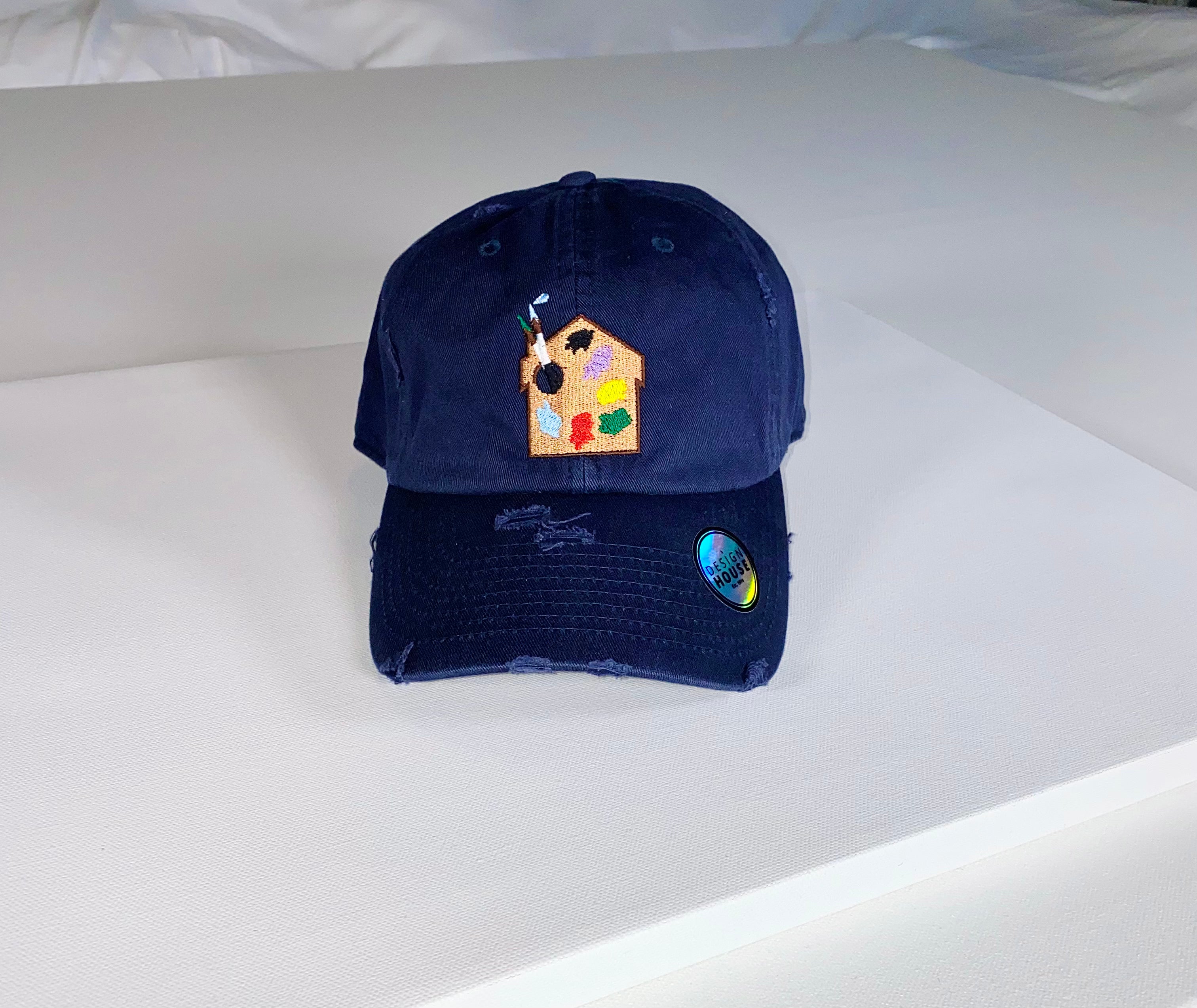 Dad hat style with the signature Design House embroidered logo patch and distressed brim. Metal back buckle adjusts to fit most head sizes.